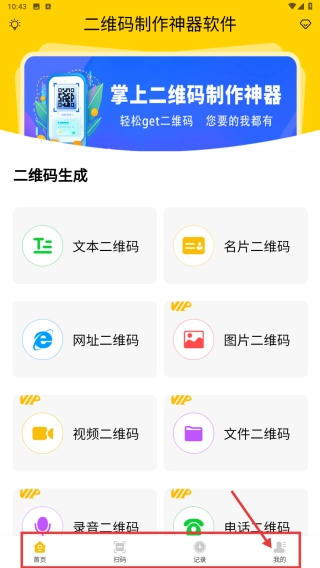 打开二维码制作神器这款软件,接着点击底部的“我的”选项,就能进入个人中心页面了。