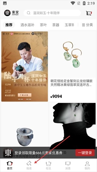 1、点击底部【拍卖】按钮,进入拍卖板块页面。