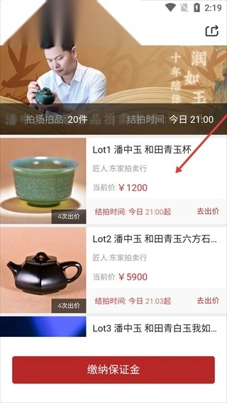 3、进入拍品列表页面,选择目标拍品。