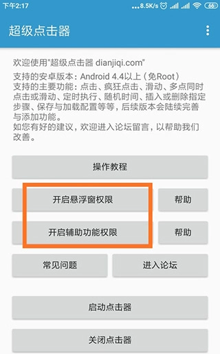 5、这个时候在点击“启动点击器”就可以出现右边悬浮窗的按钮,长按或者点击设置即可。