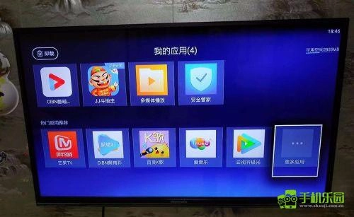 2、接下来需要在智能电视机或电视盒子上安装一个“悟空遥控器”的接收。点击盒子自带的应用库,如图进入“我的应用”后点击“更多应用”。