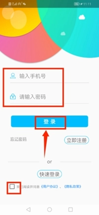 3、在登录页面填写手机号和密码,勾选相关协议后点击登录按钮,即可完成登录操作。
