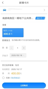 我们也可以选择购买月卡包月服务,像南部商务区的地下停车场,月卡价格就是400元一个月。