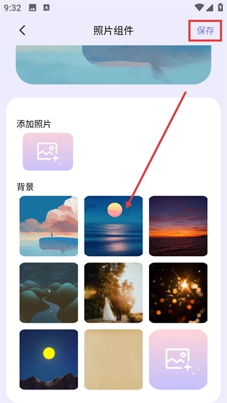 点击目标桌面组件,比如带有鲸鱼插画的组件,即可进入照片组件的设置界面。