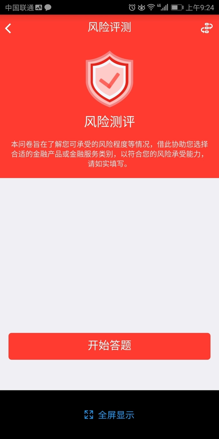 点击开始答题进行风险测评