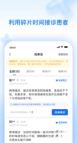 用户在线购买问诊服务后,医生将通过图文问诊、视频问诊等形式为患者提供在线医疗服务。