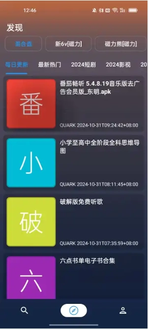 《聚合搜索》是一款资源搜索工具,用户可通过客户端搜索栏精准查找各类网盘资源;还能通过该平台获取每日更新的内容,除常规网盘资源外,客户端也会搜罗市面上优质的资源。进入软件后,用户可安心快速获取各类网盘安装包文件,且软件拥有多个接口,能让用户轻松获取精品内容,无论是影视资源还是优质应用安装包,都能便捷浏览或使用。
