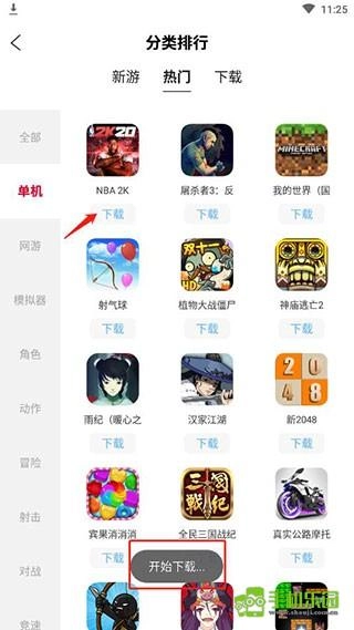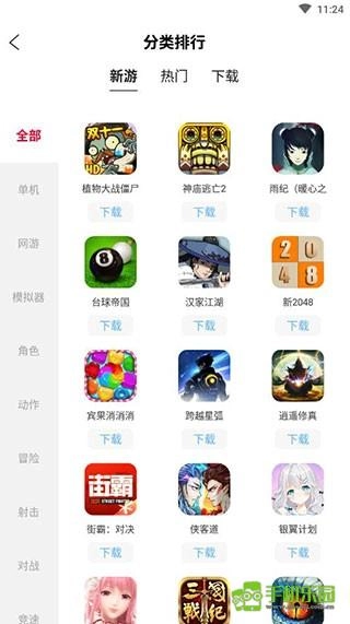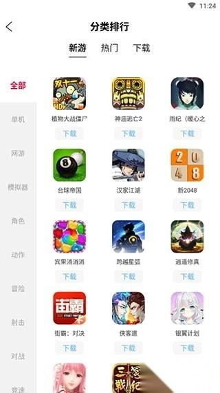 2、比如点击分类排行可以看到各类游戏分类榜单,