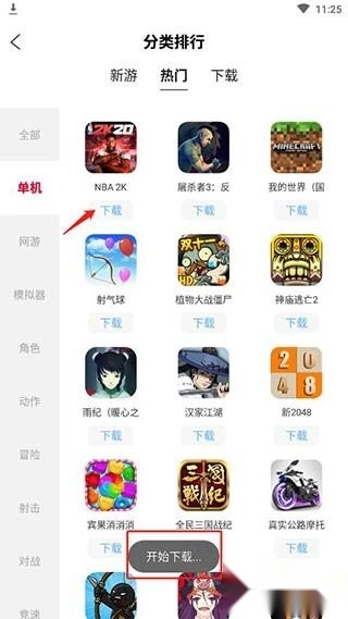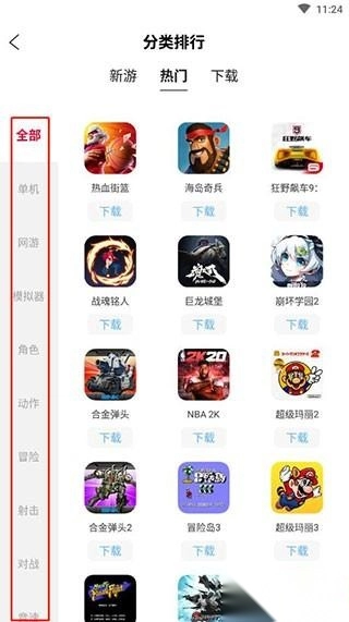 3、左侧可筛选你喜爱的游戏类型,若偏好单机游戏,点击“单机”即可;若偏好角色游戏,点击“角色”即可。