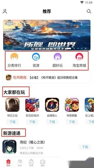 首先在本站完成该软件的安装,安装结束后打开软件,在首页就能看到平台提供的多个游戏专栏。