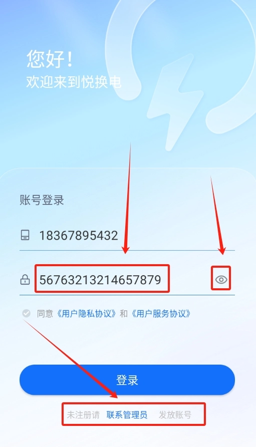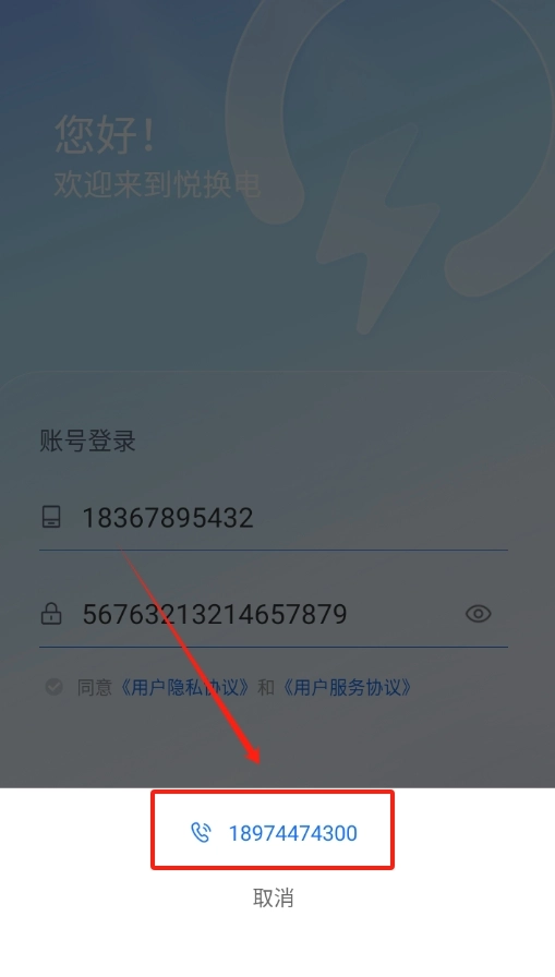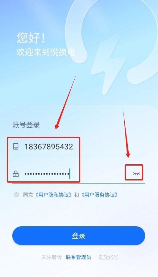 打开悦换电应用,在登录页面找到手机号输入区域,填写常用的手机号码,接着输入与之对应的密码。