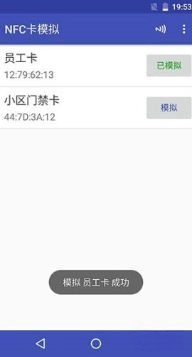 4、点击卡片上的模拟按钮,等模拟操作完成后,就可以用手机刷门禁了。