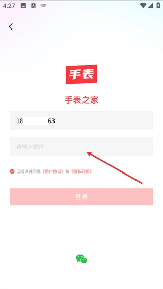 在手机号码输入框中填好对应的号码后,点击标有“请输入密码”的输入框,为填写登录密码做准备。