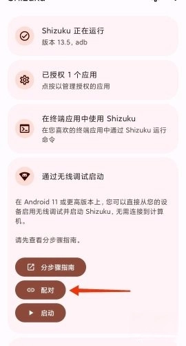 3、打开Shizuku应用并登录账号,之后点击【配对】按钮。