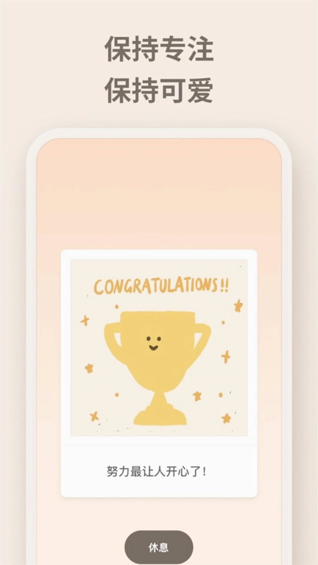 专注倒计时:极简番茄钟软件采用标准的25分钟专注加5分钟休息的番茄钟模式,助力用户高效集中注意力,防止疲劳。