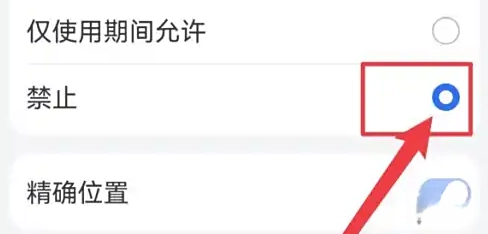 4、最后,在位置权限设置页面,选择【禁止】选项即可完成设置。
