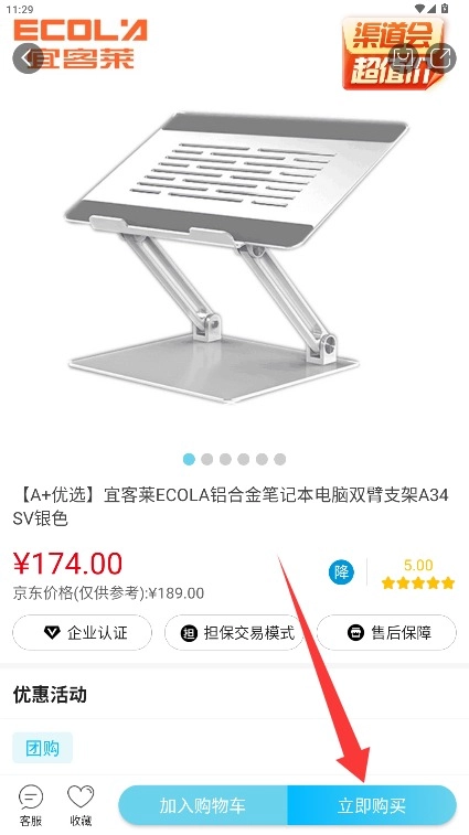 进入商品详情页面后,点击页面右下角的“立即购买”按钮,就能完成下单流程。