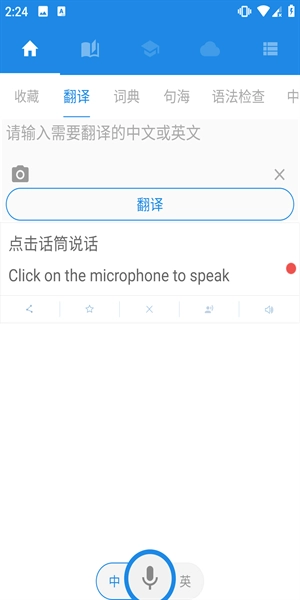 1、打开软件之后进入界面,这里会显示输入需要翻译的中文或者英文。