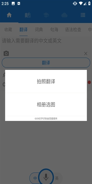 2、可以选择拍照翻译的方式,将图片存放进来进行翻译即可。