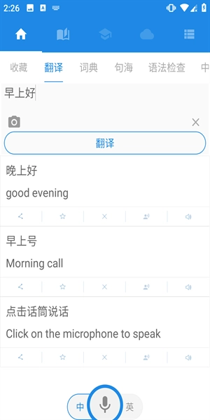 4、可以直接使用语音录制功能来对文字进行翻译,软件会自动翻译出你想要的效果。