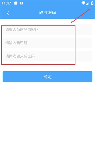 4、依次填写“当前登录密码”“新密码”“再次输入新密码”,确认内容无误后点击【确定】按钮,完成密码修改操作。