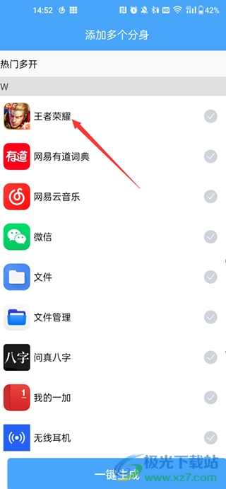 1、首先打开手机中的斗转多开,在“添加多个分身”窗口中,选择自己想要进行虚拟定位的软件,将其勾选上。