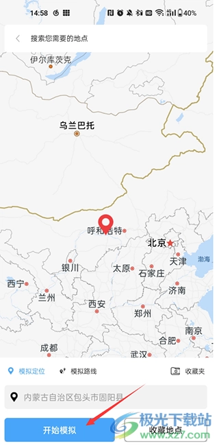 4、然后选择一个合适的虚拟定位的位置,再点击下方中的“开始模拟”按钮。