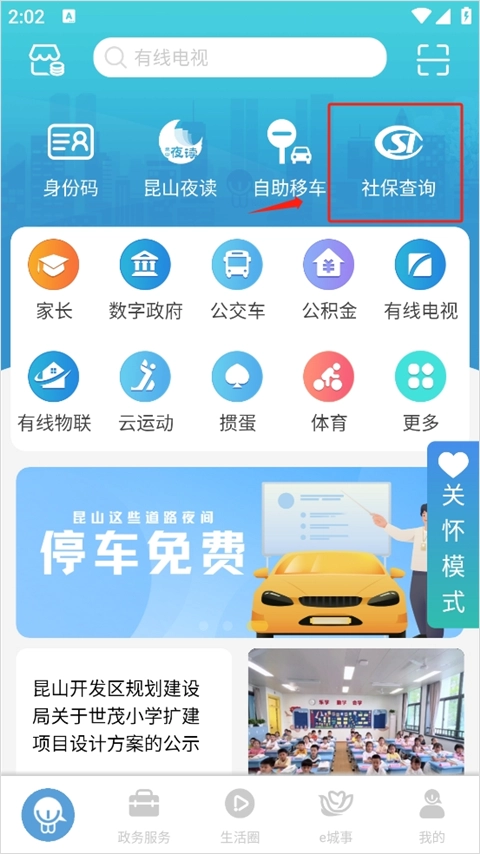打开智慧昆山后,你可以通过点击首页的「教育服务」板块,或者在搜索栏输入“请假”关键词,来快速找到对应的功能入口。