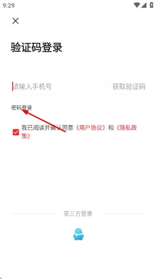 在验证码登录页面点击密码登录选项,即可进入密码登录页面。