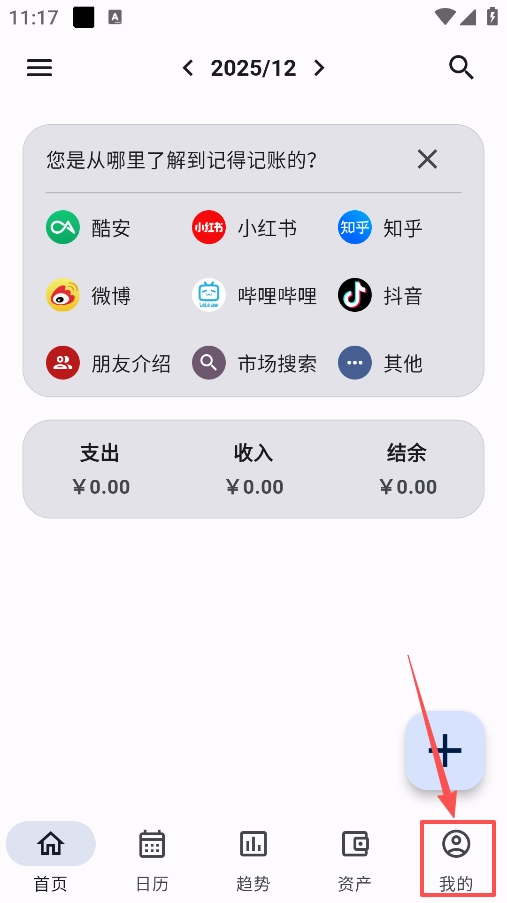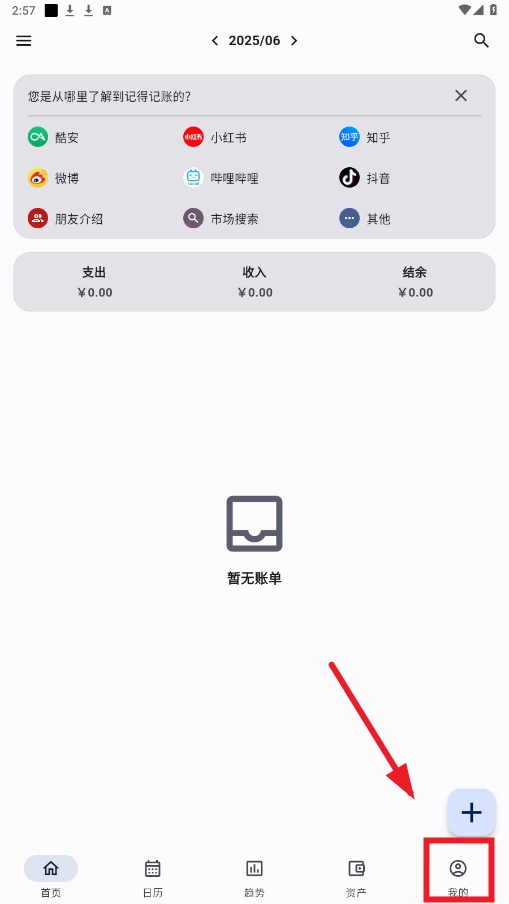 1.打开记得记账,进入首页,点击右下角我的
