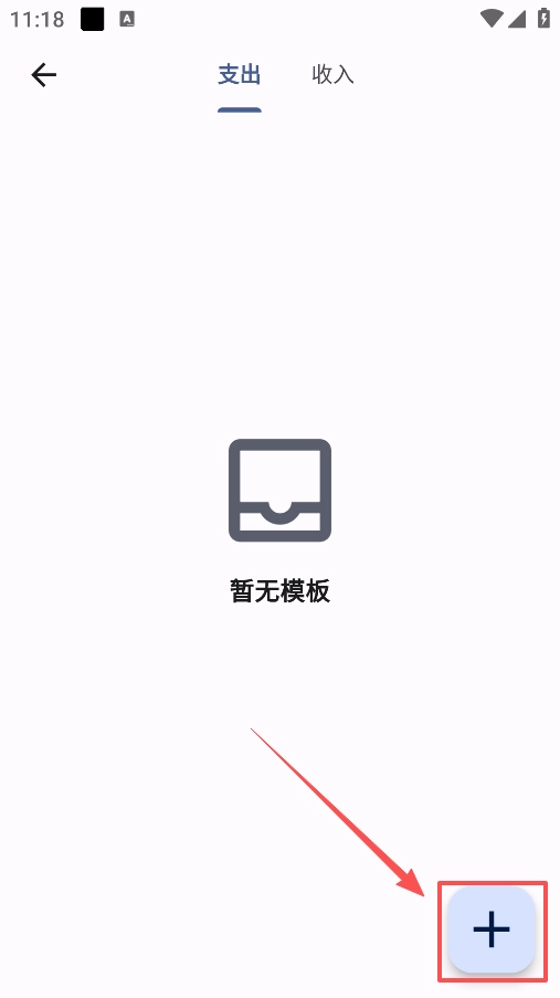 3、进入模板界面后,在上方选择【支出】选项,接着点击右下角的【+】按钮。