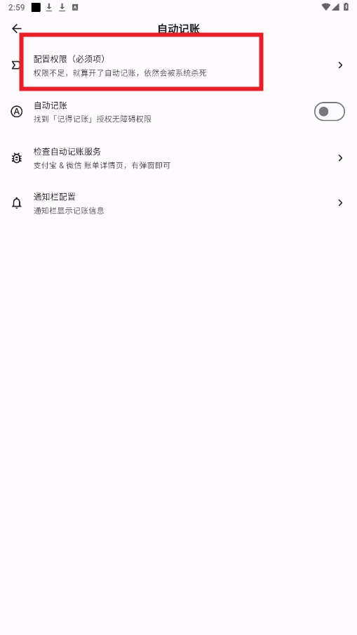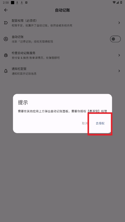 7.按照提示,配置权限,即可开始自动记账