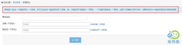 群组需至少包含一名配送员与一家店铺,也可包含多名配送员和多家店铺;不过一名配送员仅能绑定一个群组,一家店铺也仅能绑定一个群组;当某家店铺生成订单时,该群组里的所有配送员都会收到推送通知。