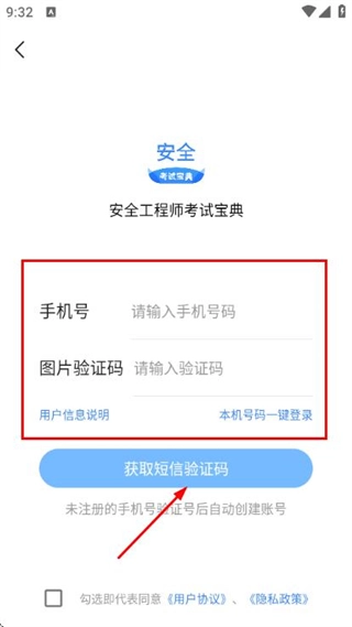 在登录页面依次填写手机号码、验证码,勾选同意相关协议后,点击获取短信验证码的按钮。