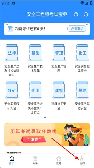 在安全工程师考试宝典首页,点击底部的“我的”选项,即可进入个人中心页面。