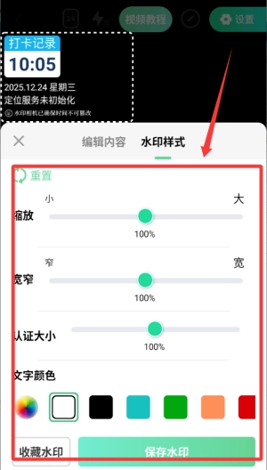 4、随后进入水印样式编辑界面,调整好大小规格、文字颜色等设置后,保存该水印。