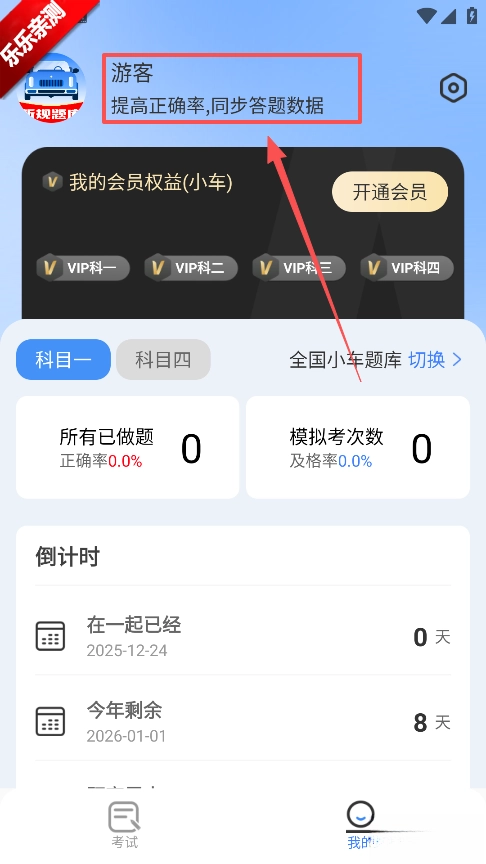 2、进入模拟考试页面后,依据自身需求挑选拟参加的考试科目,例如科目一或者科目四。