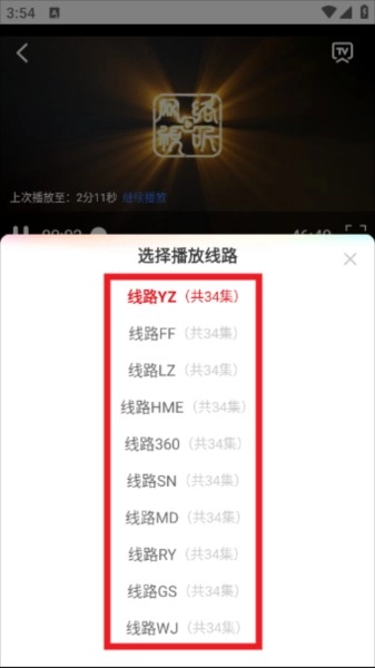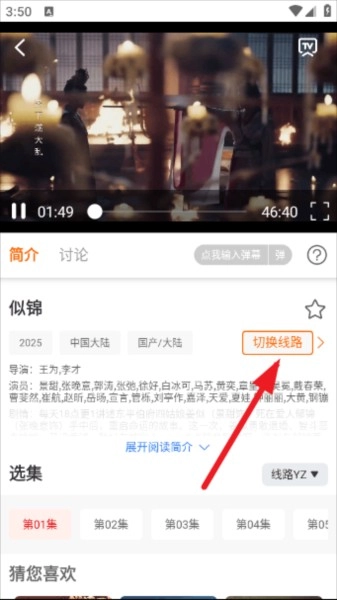 2、若播放界面出现卡顿,可点击底部的线路切换按钮,调整线路或清晰度来解决。
