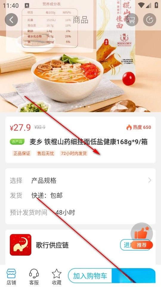 在商品详情页面了解商品详情,点击右下角进行购买。