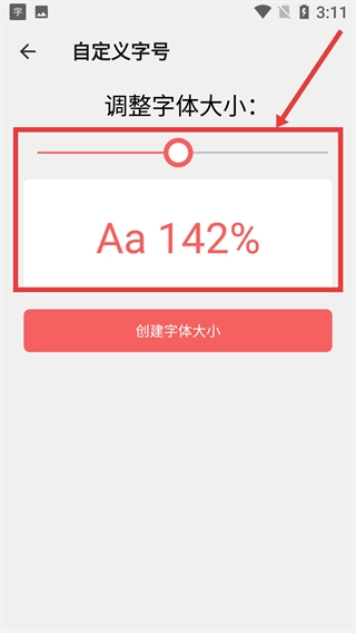 在【自定义字号】页面,拖动滑块调整字体大小,可实时查看【Aa】示例的放大效果。