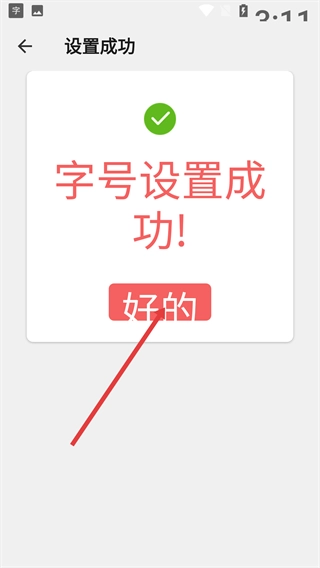 当屏幕上显示【字号设置成功!】的提示信息时,点击【好的】按钮,这样就可以完成全部的字体设置步骤了。