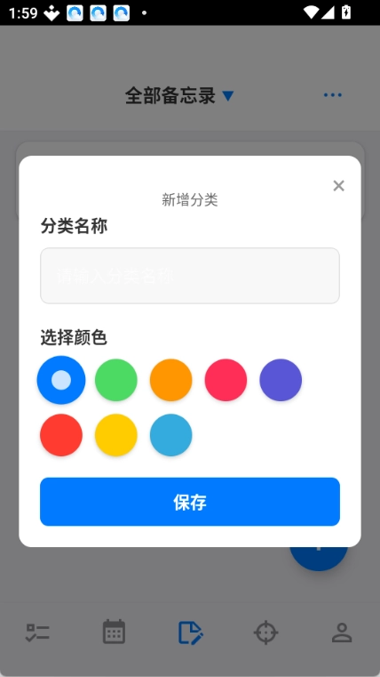 输入新分类的名称,挑选一个颜色,点击“保存”按钮,即可完成新分类的创建。