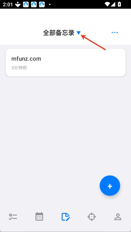 点击全部备忘记录向下三角形图标。