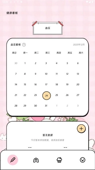 1、在血压记录页面,按照日历进行记录,方便我们添加数据。