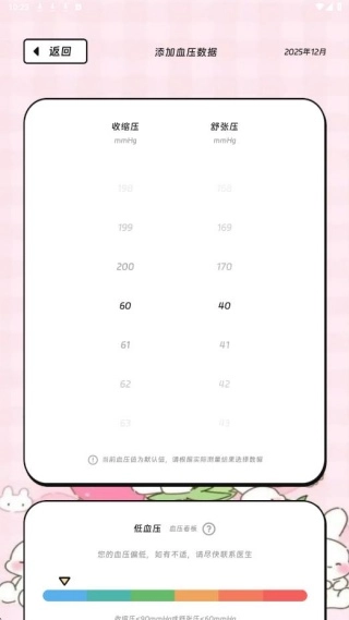 3、每次记录血糖血压后,它会自动给你标注出数值偏高或偏低,方便你第一时间发现异常,及时调整生活方式。