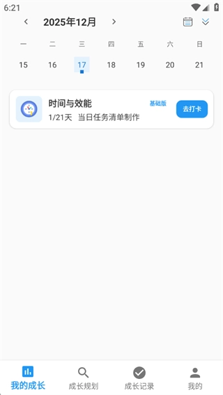 2、我的成长历程有详细的日历记录,用户可以直接高效地打卡,享受便捷体验。