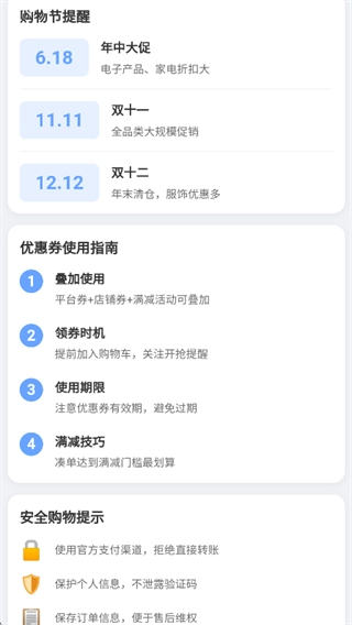 2、软件内容将围绕各大电商购物节、平台主题活动以及季节性促销展开动态更新与深度解读,力求成为用户可信赖的长期消费决策伙伴。