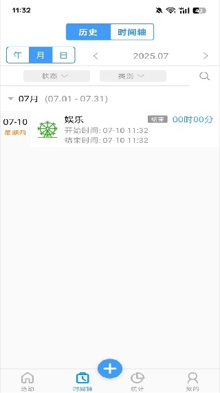 3. 之后可以在【时间轴】里查看详细的时间记录相关信息