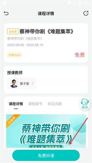进入课程详情页面后,点击【免费听课】按钮就能参加课程啦。