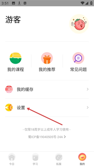 进入【我的】页面后,点击【设置】选项,即可进入设置界面。